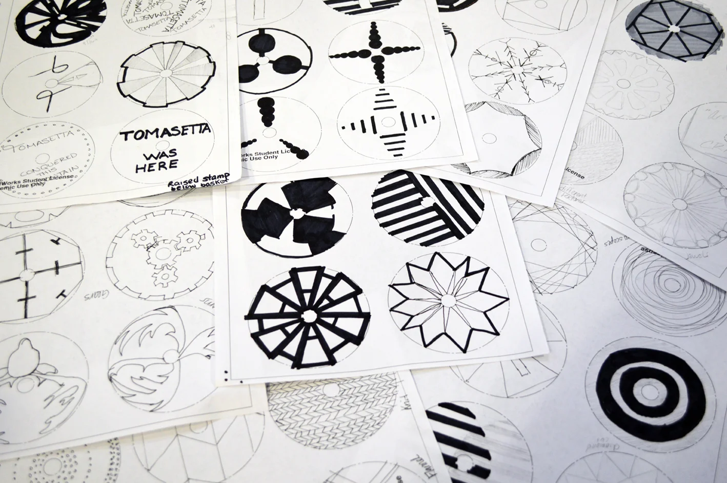 I prototyped several different methods of attaching ski pole baskets to varying ski pole diameters. I also 3D printed several versions of the imprinting pattern to test out in the snow.