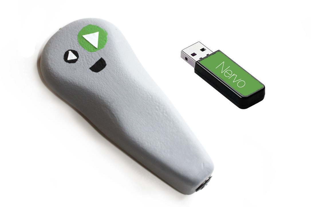 Nervo serves the needs of a young professional who is incredibly nervous and intimidated by giving presentations. I wanted to design a presentation pointer that would help the user find some comfort while giving a presentation in both form and aesthetic. The ergonomics of the pointer serve both for universal comfort, but also provides an area to rub one's thumb much like a worry stone. Aesthetically, I wanted to create a button interface that was humorous and would lighten the mood, while still maintaining a professional sleek look. The simple button interface also ensures that the presenter will make less mistakes and also the emphasis on the green, raised Forward button helps the presenter easily find the correct button.